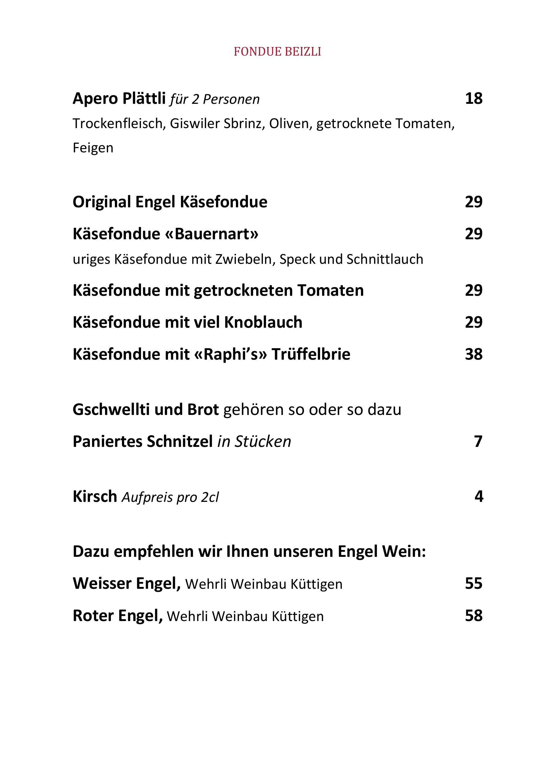 Speisekarte